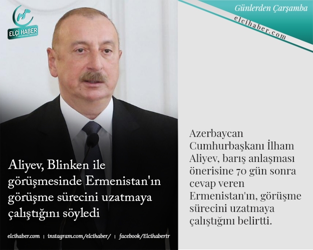 Azerbaycan Cumhurbaşkanı İlham Aliyev, barış anlaşması önerisine 70 gün sonra cevap veren Ermenistan'ın, görüşme sürecini uzatmaya çalıştığını belirtti.