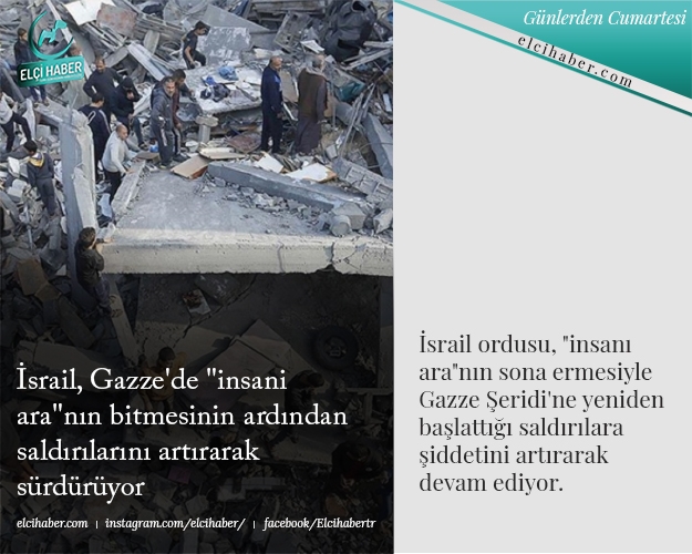 İsrail ordusu, "insanı ara"nın sona ermesiyle Gazze Şeridi'ne yeniden başlattığı saldırılara şiddetini artırarak devam ediyor.