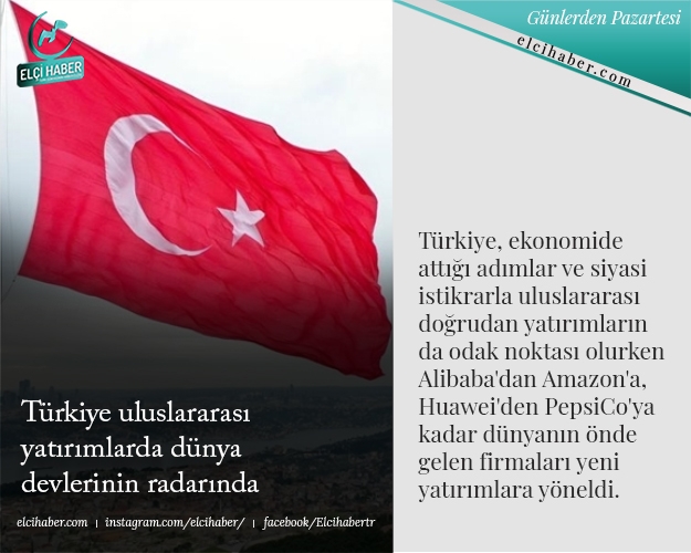 Türkiye, ekonomide attığı adımlar ve siyasi istikrarla uluslararası doğrudan yatırımların da odak noktası olurken Alibaba'dan Amazon'a, Huawei'den PepsiCo'ya kadar dünyanın önde gelen firmaları yeni yatırımlara yöneldi.